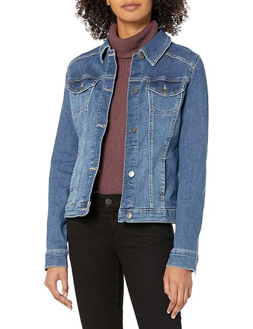 This slim-fit denim jacket is a great staple for any wardrobe — it’s a classic style that is timeless. This version has four functional pockets — two on the front chest and two on the side. It also has a slightly cropped silhouette that hits right at your hips and is crafted with ample stretch, unlike many other jean jackets on the market.