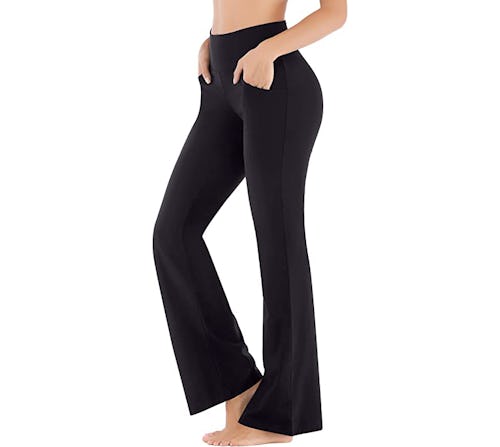 Whether you’re short or tall, these yoga pants come in a variety of lengths to make sure you can do downward-facing dogs with ease. They have a wide-leg silhouette and a high-waisted band that provides support. The incredibly soft fabric is made from 81% polyester and has 19% spandex to help make sure you’ve got enough movement to hit every pose.