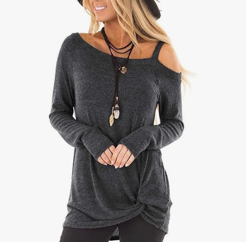 With over 7,000 five-star reviews, it’s clear to see why thousands of shoppers love this long-sleeved top. It has a cold-shoulder design and a twisted knot by the hemline. The material is crafted from a super soft and lightweight fabric that’s still thick enough to be warm. While you can style it how you want, this shirt is long enough to wear with your favorite pair of leggings.