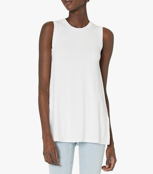 Whether you wear this tank top to yoga or wear it with jeans and a sweater, the muscle-sleeve silhouette is incredibly versatile. The breathable rayon material is made with 5% spandex and has a swing hem that won’t cling to your body. You can also buy it in a sustainable sourced rayon blend.