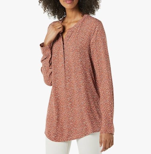 Add this long-sleeve blouse to your rotation of tops — it won’t disappoint. It has a quarter-button neckline and is crafted from a super lightweight material that is soft to the touch. Perfect for the office or out to dinner, this is an easy shirt that makes getting dressed in a rush so easy. The brand recommends hand-drying only.