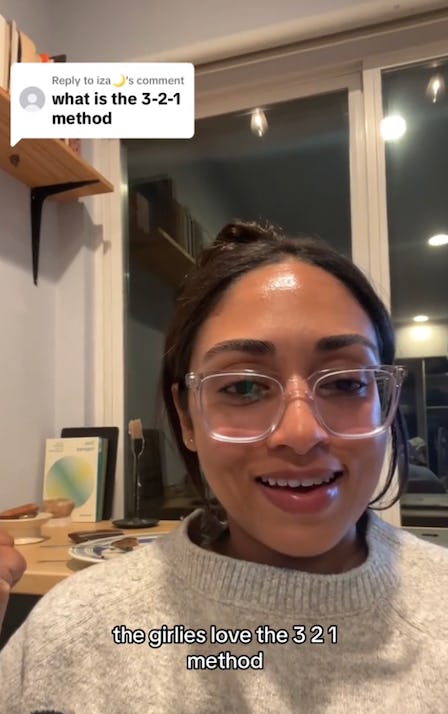 In a viral TikTok, creator @jennaevelynnn explained the 3-2-1 workout by saying it’s three days of strength training, two days of Pilates, and one day of cardio, plus a rest day. For Jenna, that looks like full-body dumbbell workouts, YouTube Pilates videos in her bedroom, and one sweaty interval sesh to get her heart rate up.
