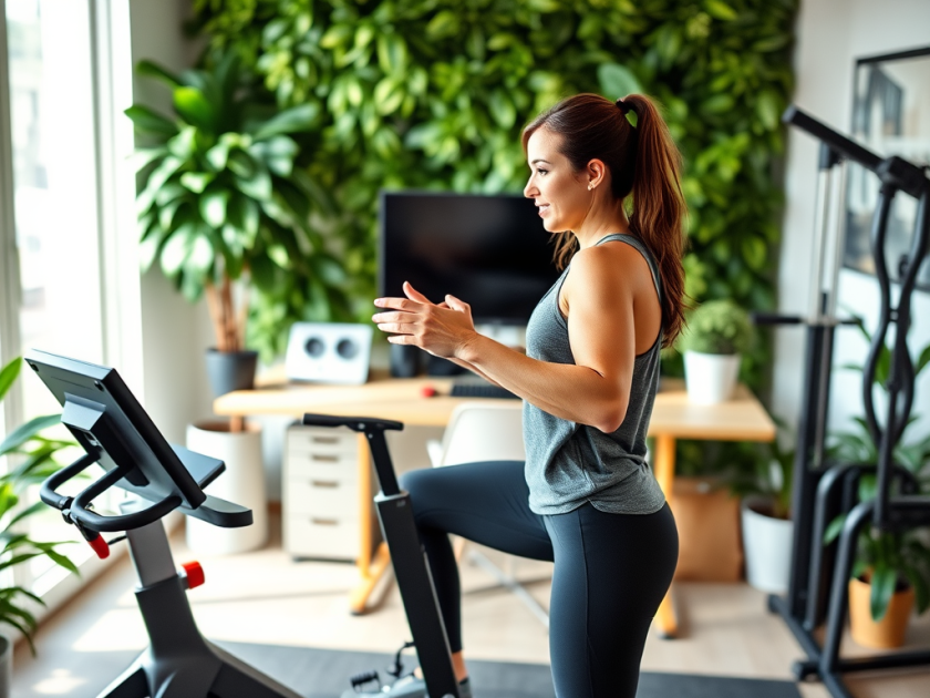 - She stocks her home office with workout equipment and squeezes in workouts when she can.