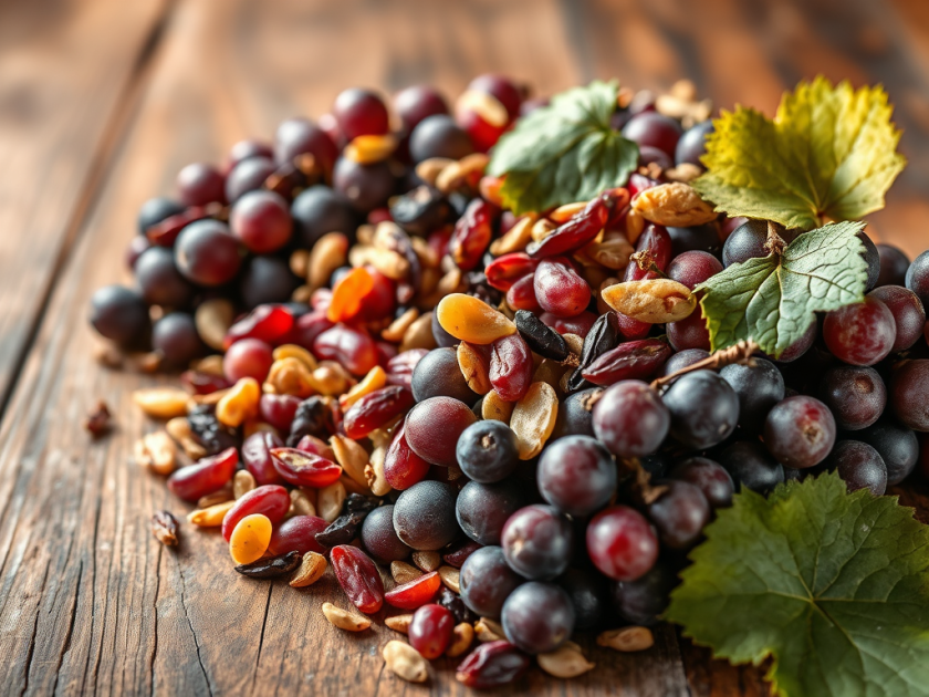 Polyphenols: A major category of plant antioxidants found in grape pomace, known for supporting heart health and reducing inflammation.