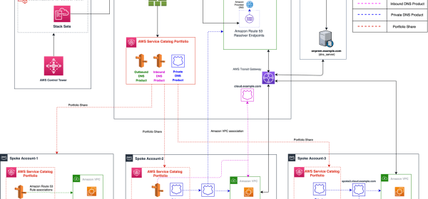 The solution uses the Customizations for Control Tower framework and AWS Service Catalog to provision the DNS resources across a multi-account setup.
