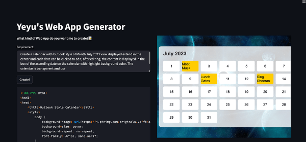 By harnessing the potential of this application I called Text2WebApp or WebApp Generator, users can now create web applications in their own natural language, by describing the elements, functions, and appearance
