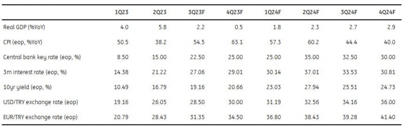 - The CBT hiked its policy rate by 250bp (to 17.50%) with another under-consensus move. The bank announced a number of “quantitative tightening and selective credit tightening” measures, as signalled by the MPC.