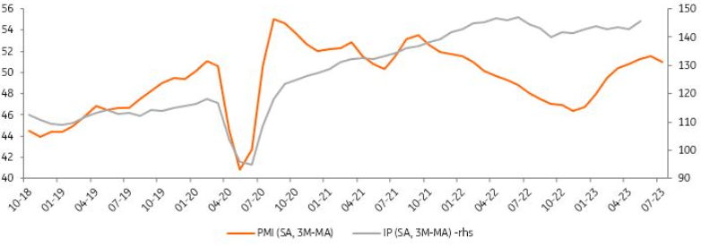 However, for the third quarter, moderation in business sentiment, sectoral and consumer confidence indicators hint at some easing in the activity. Additionally, manufacturing PMI that was above 50 in the first half returned below that threshold in July, standing at 49.9 and implying a momentum loss. This is likely attributable to currency volatility in the aftermath of elections, weighing on both input costs and selling prices and adversely impacting demand, hence making it harder for firms to secure new business.