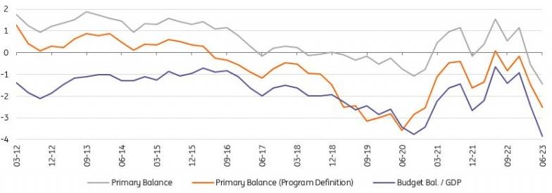 In June, the budget posted a deficit of TRY219.6bn from a mere TRY31.1 in the same month of last year, while the deficit for the last 12 months rose to TRY715.9bn (3.9% of GDP). According to the programme (IMF) defined primary balance realisation, which excludes one-off revenues, the 12-month rolling primary deficit was at 2.5% of GDP.