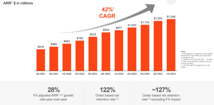 These transformative impacts of automation are visibly reflected in UiPath’s financial performance. In the first quarter of fiscal 2024, the company achieved Annual Recurring Revenue (ARR) of $1.2 billion, marking a remarkable 28% increase. Furthermore, the company significantly improved its non-GAAP operating margin from a negative 4% in the first quarter of the previous year to a positive 17% in Q1—a substantial stride toward UiPath’s long-term operating margin target of 20%+.