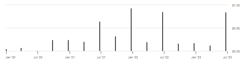 As seems normal with International equity ETFs, the year-end payment is larger, especially for funds with large Japanese holdings. Even with a yield of almost 2.5%, BBIN is unlikely to be held for its income generation.