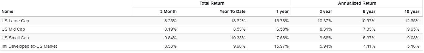 Reviewing International equity ETFs reminds me of the old Washington Senators baseball team. The common refrain at the time was: “Washington: First in war, first in peace, and last in the American League.”. With International stocks comparing poorly to US stocks over most recent time periods, who cares?