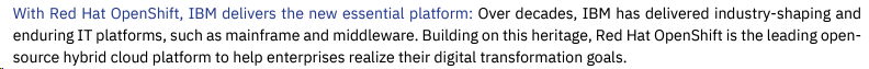 Based on the company’s annual report, the company highlighted its hybrid cloud strategy featuring Red Hat OpenShift highlighted as “the leading open-source hybrid cloud platform and enables clients to build, secure, operate and manage any application, anywhere, from on-premises environments to multiple clouds and the edge” catering to various enterprise clients including Fortune Global 500 companies.