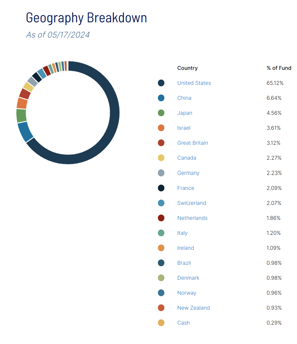 The holdings are fairly unique here when you look into them. No position makes up more than 1.71% of the fund, and you actually have a nice blend of global exposure.