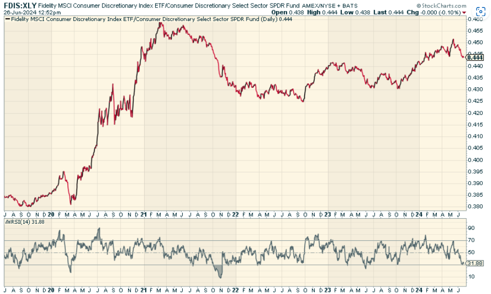 The consumer is dead. Long live the consumer. Let’s face it – as long as there is a credit card limit that hasn’t been hit, consumers will keep spending and be a big driver of the economy. Sure – unemployment rising should impact them, but who knows when. Consumer Discretionary stocks have been significant underperformers relative to the S&P 500 since 2022, but perhaps the sector is now due for leadership. If you’re in that camp, you may want to consider the Fidelity MSCI Consumer Discretionary Index ETF (NYSEARCA:FDIS).