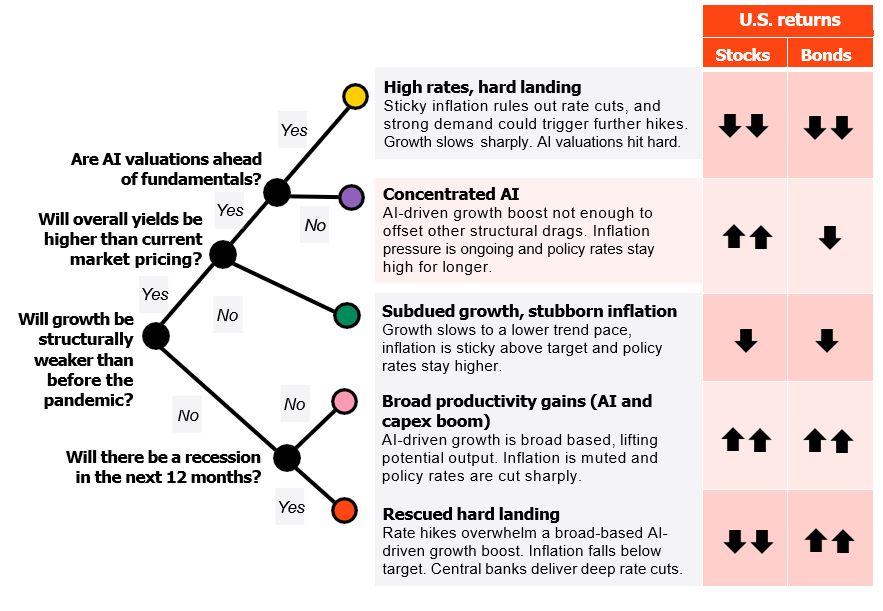 We lean into the concentrated AI case, reflecting our view that AI valuations are rooted in solid earnings. Yet, we stand ready to pivot – and our approach gives us a roadmap to gauge when another scenario becomes more likely. We think expertise in identifying these scenario shifts could help investors deliver outsized returns.