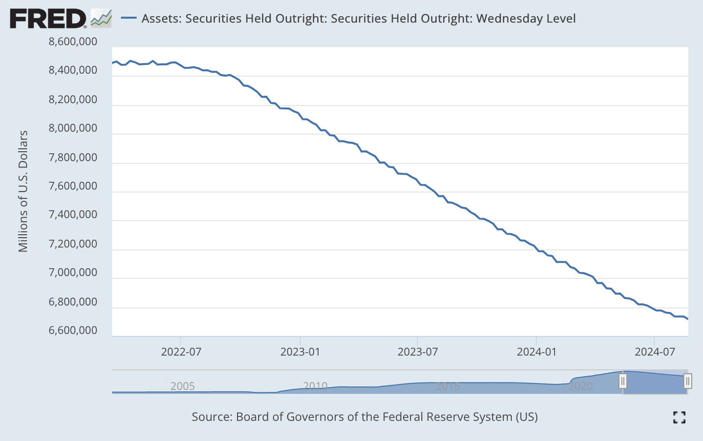 As Mr. Powell and the Fed fought inflation over the past two years or so, Mr. Powell and the Fed have always tried to err on the side of being tight for a very long period of time. The Fed has been conducting its policy of quantitative tightening for twenty-nine months.