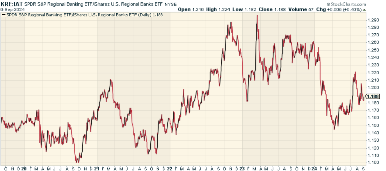 Remember that whole regional banking crisis thing? The regional banks certainly remember, particularly those that went bust. It’s been over a year since we had that scare, and now with the Fed entering a rate cutting cycle, I think we can safely assume much of that crisis is over. But the question is, can regional banks now be a place to actually invest in the long term? I really don’t know the answer. On the one hand, I think there’s an argument to be made that the bearishness and underinvestment means the industry group is due for leadership. On the other hand, if we hit a recession, these companies could be quite vulnerable. If you’re bullish and contrarian, and want exposure to regional banks easily without needing to do stock picking, then you may want to consider the SPDR® S&P Regional Banking ETF (NYSEARCA:KRE).