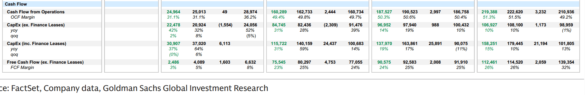 - Microsoft’s capex is surging, potentially outpacing cash flow, raising concerns about sustainability if growth targets are missed.