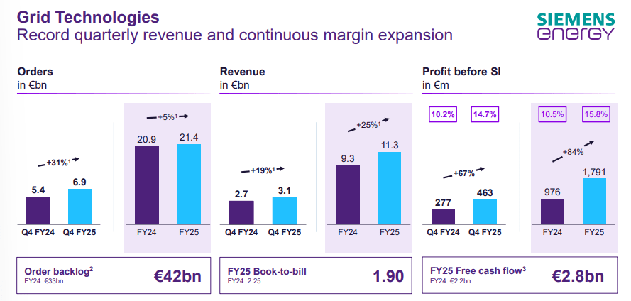 Secondly, there is Grid Technologies [GT] which provides transmission systems, high voltage equipment and power grid stabilization solutions. If Gas services is the muscle, then Grid is the connective tissue of the electric age. And it is in high demand. In 2025, orders hit an all time high and backlog reached €42 billion. GT’s revenue grew by 19% with profitability surging as high as 14.7% in Q4 2025.