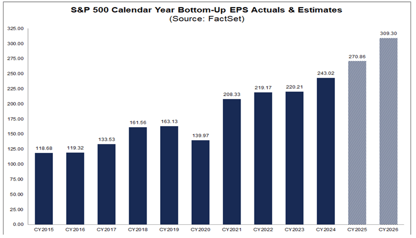 Now, excluding the technology sector, earnings growth is expected to be closer to 8%, speaking to how dependent the market is on technology delivering. Still, 8% ex-technology growth is ambitious. I am also cautious that tariffs may have a delayed impact on margins, as companies have worked through pre-tariff inventory. I view 5%-7% ex-technology earnings growth as a more reasonable base case. Even assuming tech delivers as hoped, I view ~$304 as a better EPS base case for the S&P 500. This still is up 9% from 2025 levels.