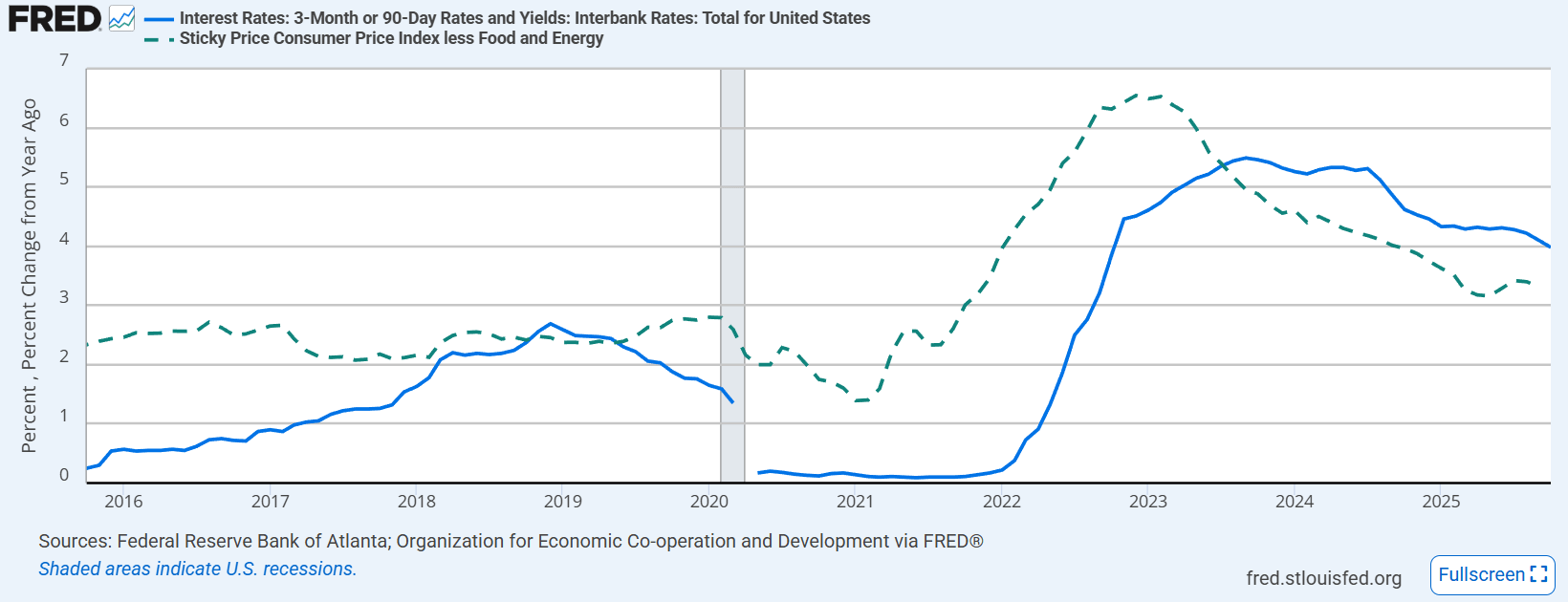 So, in making buy, sell or hold decisions on stocks, what I look for are patterns across many different companies and use these to determine what groups/types of companies are most likely to diverge from the rest of the market through their outperformance. My assessment today is based on my own confidence in company specific growth expectations and undervaluation metrics. The broader macro environment will play a role in situations where companies are highly leveraged or in a particular stage of growth that is highly sensitive to things like interest rates. Where do I see value? What types of companies am I buying going into 2026? Let’s look at the macro picture first before answering this question.