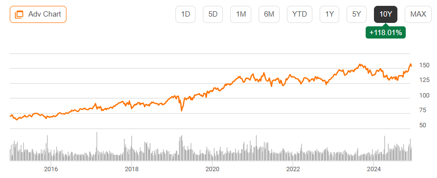 Elsewhere, the healthcare sector has underperformed the market but several names continue to boast strong earnings, trading at historically low valuations. I would include Zoetis (ZTS), Davita (DVA), Novo Nordisk (NVO), Progyny (PGNY) and Align Technology (ALGN) as examples. Most of these are companies I have covered before, which I believe remain good value. The healthcare ETF (XLV) has shown a strong 10-year trend and will, in my view, bounce back from a weaker 2025 (just 6% growth). This process has already started to develop, with shares in the ETF edging closer to all-time highs reached in September 2024 after a healthy rebound in the last few months.