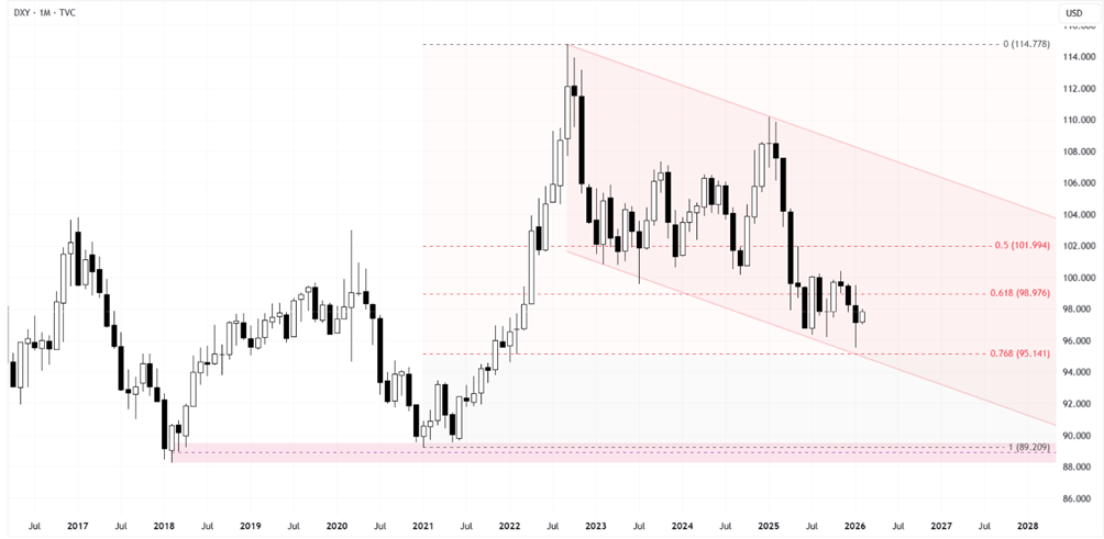 Technical analysis of DXY timeframe 1M. Source: Tradingview.