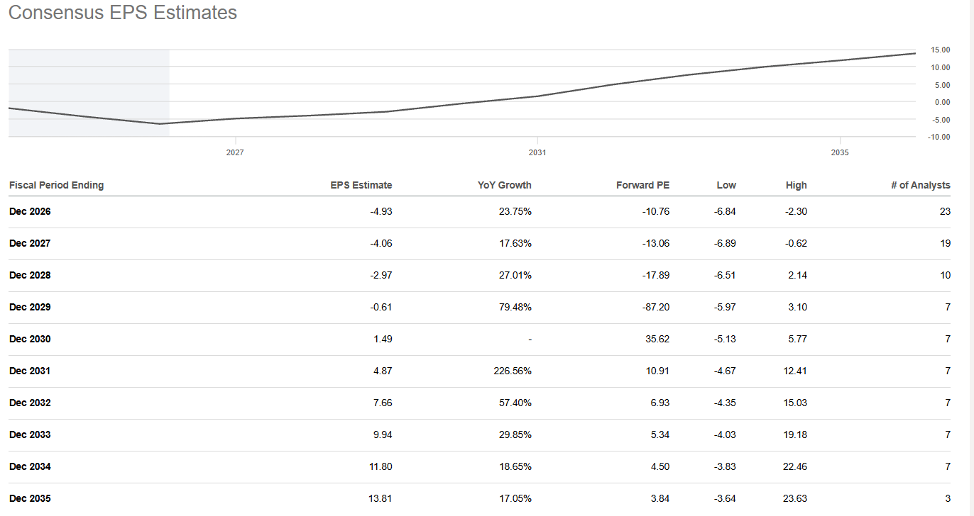 Their cash reserves of about $1.97B should easily last for about two to three years. For example, I modeled about $600M cash burn for 2026 and profitability by 2029. With higher sales in 2028, cash burn should be lower; therefore, they have chances for enough cash runway without needing to raise more capital. However, I acknowledge that both R&D and Collaboration expenses could come higher, so they might need more capital somewhere in 2028-2029. Especially if we look at consensus, they are estimated to become profitable only by 2030: