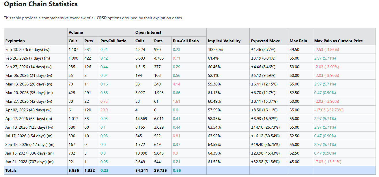 Figure 5: CRSP Put-Call Ratio (OptionCharts)