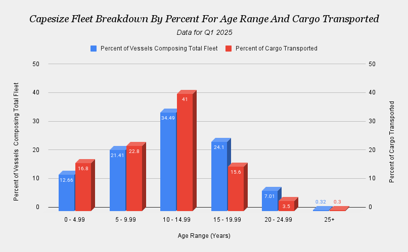 Capesize Fleet Breakdown By Percent For Age Range And Cargo Transported (VIE)