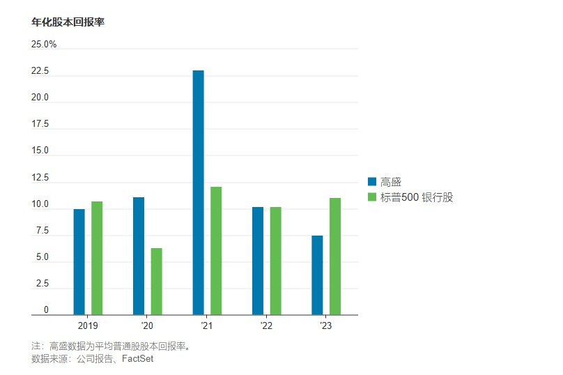 这可能并非巧合。与其他华尔街银行一样,高盛将受益于并购或首次公开募股(IPO)活动的升温,以及任何监管放松方面的举措。总的来说,当华尔街形势好的时候,高盛的形势会非常好:在2021年并购活动激增期间,高盛的年度股本回报率为23%,而标普500指数成份股银行的整体回报率为12%。