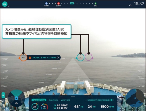全4222文字 船舶用機器のJRCSが人工知能(AI)で航路を監視するシステムを開発した。AI機能を持つクラウドのエッジサーバーを採用し、航海時も使えるようにした。開発のためIT人材を採用し、デジタル変革(DX)を推進している。 (写真提供:JRCS) [画像のクリックで拡大表示] 「実証実験に参加した阪九フェリーの船長5人全員から、安全運航に役立つとの評価を得た」。山口県を拠点に船舶用制御システムを手掛けるJRCSの空篤司執行役員最高デジタル責任者(Chief Digital Officer)は、海上の危険を察知する人工知能(AI)システムの手応えをこう話す。 阪九フェリーとの実証実験は2020年8月に実施。同年11月16日、既存の船舶に後付けで導入できる製品として、状況認識システム「infoceanus command(インフォシアナス コマンド)」の提供を始めた。 図 JRCSが構築した状況把握システム「infoceanus command」 AIで海上の危険を察知(写真提供:JRCS) [画像のクリックで拡大表示] infoceanus commandは航海士による海上監視を支援する。一般に航海士は航行中、常に双眼鏡で漂流物や漁網など海上の障害物を監視する。小型船舶も監視対象になる。船舶同士が互いの位置を知らせる「自動船舶識別装置(AIS)」を搭載していないからだ。監視業務は大きな負担となっている。 infoceanus commandは船上のカメラが捉えた映像をAIで解析し、物体を検出するとカメラ映像上でハイライト表示する。これにより監視業務の負担を軽減すると同時に、目視による見落としを防ぐ。 目視よりも物体検知の精度が高いという。特に夜間は海上の光点を検出・識別する技術により、赤外線カメラやLiDAR(ライダー)などの高額なセンサーを使わずに検出する。GPS(全地球測位システム)による自船の位置、AISによる他の船舶の位置、風向風速や潮流といった気象・海象の情報を取り込み、航海地図の画面に表示する機能なども備える。 図 infoceanus commandの「航路ナビ」機能 自船・他船の位置、気象・海象を海図に表示(写真提供:JRCS) [画像のクリックで拡大表示] JRCSは2018年4月にデジタルトランスフォーメーション(DX)の推進組織「JRC Digital Innovation LAB(DIL)」を設立し、海運業のDXを支援するプロダクトを開発してinfoceanusというブランドで展開している。米マイクロソフトのMR(複合現実)ゴーグル「HoloLens」を活用した船舶機器の操作の仮想訓練システム「infoceanus training」を2019年4月から、船舶のトラブルシューティング支援システム「infoceanus assist」を2020年6月からそれぞれ提供している。infoceanus commandは第3弾のプロダクトだ。 この記事は有料会員限定です。次ページでログインまたはお申し込みください。 次ページ 米国でのワークショップが契機に