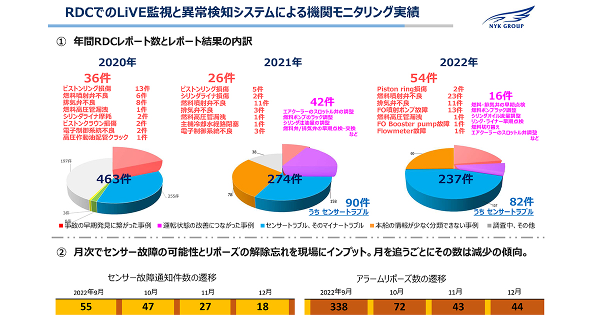 2021年のSIMS3からは、取得できるデータが増えたことでやりたいことがかなりできるようになったそうだ。情報の粒度を細かくしたことで、異常の検知なども迅速に行えるようになっているのだ。これらのデータはRemote Diagnostic Center(RDC)でモニタリングすることで、運航船舶の安全性と効率化向上に活用しており、今後もさらにこの体勢をブラッシュアップする。